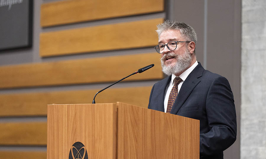 Para cerrar el acto protocolario, Luis Marrufo Cardín, titular de la Dirección General Académica del ITESO, expresó su alegría por reconocer a las y los egresados que forman parte de “una comunidad que busca de manera permanente la verdad para aplicarla en la sociedad, en especial en favor de los más necesitados”. Dijo que la universidad reconoce la trayectoria y sus trabajos. Después, compartió tres reflexiones acerca de qué es la construcción del bien desde la universidad.